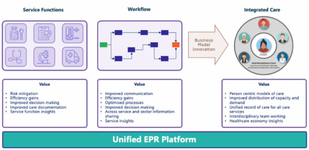 EMR solutions must provide a critical enabling and supportive role for the unimpeded flow of information across a healthcare region to inform the joined-up planning, management, allocation, and delivery of timely and appropriate care interventions.